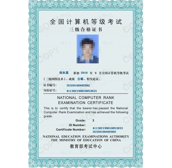 全国计算机等级考试三级证书
